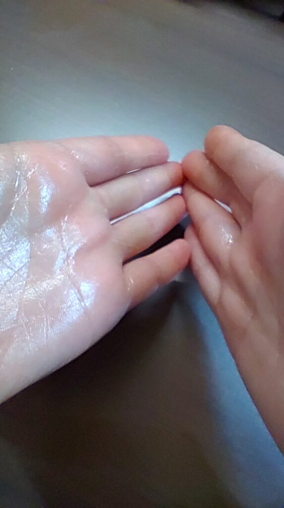 ③手の平で軽くこすり合わせて“なんとなく馴染ませる”