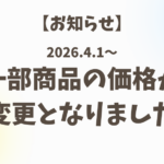 価格改定は【2026年4月1日】より実施されており、対象商品は以下の商品です。